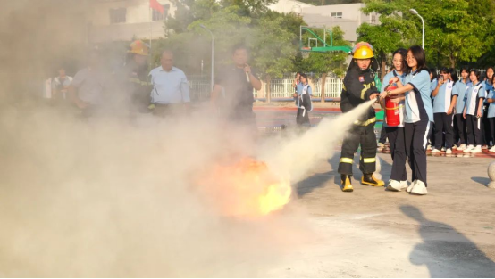 最后許碧奎副校長進行本次消防演練總結:此次消防安全演練進校園活動,以“培訓+演練”的方式,讓大家零距離接觸消防、認識消防、體驗消防,通過沉浸式體驗讓大家進一步了解掌握消防器材的使用及火災的處理流程,增強安全防火意識,同時為加強校園消防安全管理工作,創(chuàng)建安全校園打下堅實基礎。