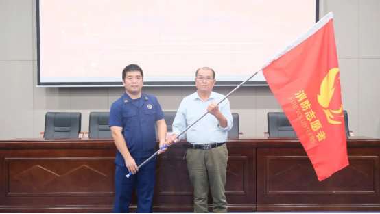 惠安縣為消防大隊向我校消防志愿者服務隊授旗。