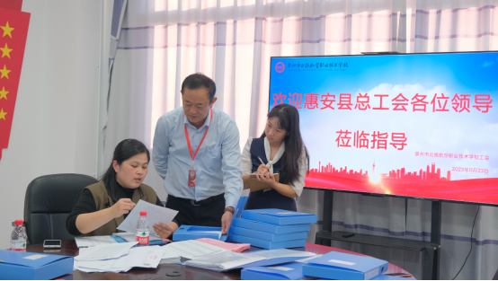 11月23日,惠安縣總工會(huì)副主席任惠川,黃塘鎮(zhèn)黨委組織委員、鎮(zhèn)工會(huì)主席黃秀敏帶隊(duì)到我校進(jìn)行考察,認(rèn)真審閱了申報(bào)材料,實(shí)地查看了職工之家、職工閱覽室等,全面評(píng)議和驗(yàn)收了我校工會(huì)的工作開展以及職工之家的建設(shè),對(duì)我校工會(huì)的工作成果給予了肯定和鼓勵(lì)。