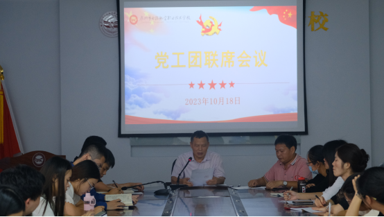 在縣、鎮(zhèn)工會(huì)領(lǐng)導(dǎo)及校內(nèi)黨工領(lǐng)導(dǎo)的關(guān)心指導(dǎo)與重視下,我校工會(huì)各項(xiàng)工作有條不紊地開展著。10月18日下午,我校召開黨工團(tuán)第一次聯(lián)席會(huì)議,學(xué)校黨支部潘向東書記對(duì)學(xué)習(xí)貫徹習(xí)近平新時(shí)代中國特色社會(huì)主義思想主題教育工作做出具體部署和要求,副校長、工會(huì)主席陳炳耀深入解讀了工會(huì)的職能,會(huì)議明確了黨工團(tuán)組織是確保學(xué)校前進(jìn)方向的重要組織。