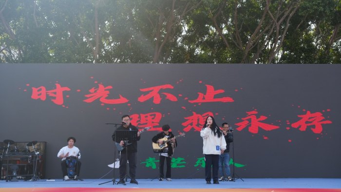《理想+我們的時光》樂隊演唱:我校青芒樂隊帶著輕快悠揚的旋律,嗨翻現(xiàn)場,他們唱出了我校技工學子的青春與朝氣,贏得了現(xiàn)場觀眾熱烈掌聲。