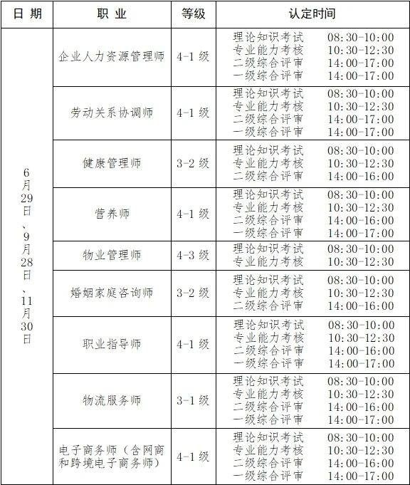 職業(yè)技能等級統(tǒng)一認(rèn)定時間安排: