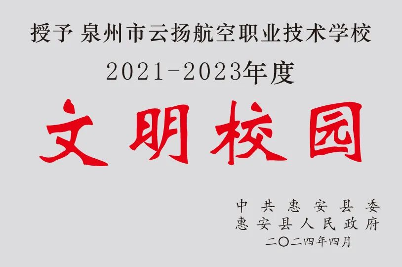 初心如磐,文明如歌,承澤致遠(yuǎn),砥礪奮發(fā)!泉州市云揚(yáng)航空職業(yè)技術(shù)學(xué)校將以此次榮獲“文明校園”榮譽(yù)稱號(hào)為契機(jī),不忘立德樹人初心,牢記為黨育人、為國(guó)育才使命,持續(xù)奮力譜寫我校精神文明建設(shè)新篇章,做有溫度的教育,讓文明之花在云揚(yáng)繼續(xù)綻放!
