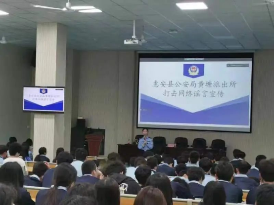 為進一步增強學(xué)校師生的識謠辨謠能力,有效凈化轄區(qū)網(wǎng)絡(luò)安全環(huán)境。4月17日,黃塘派出所深入轄區(qū)泉州市云揚航空職業(yè)技術(shù)學(xué)校開展“抵制網(wǎng)絡(luò)謠言”主題宣傳講座。