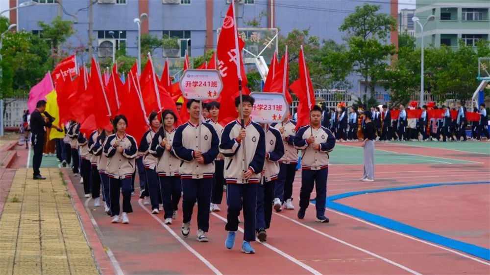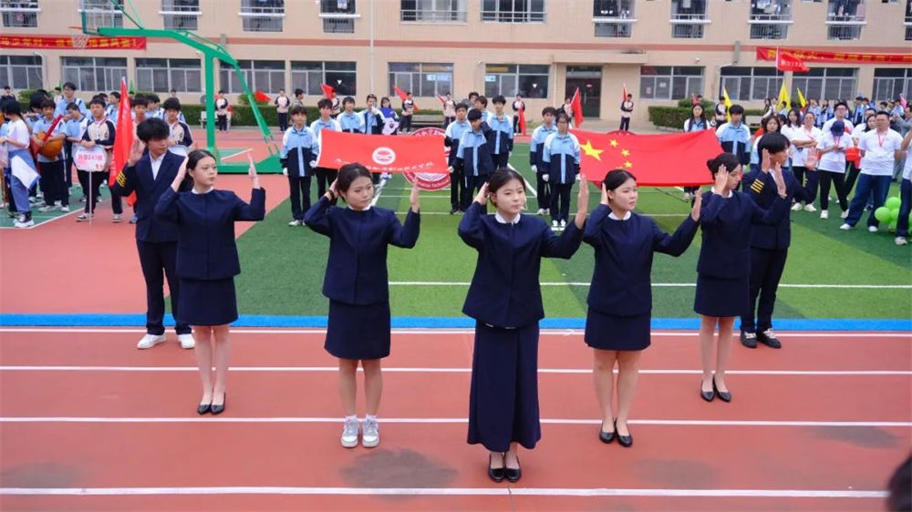 入場式上,各方陣精彩亮相。國旗護衛(wèi)隊英姿颯爽,手擎鮮艷的五星紅旗引領(lǐng)入場隊伍步入會場,校旗護衛(wèi)隊緊隨其后,彰顯著云揚航空職業(yè)技術(shù)學(xué)校的精神與榮耀。教師方陣精神昂揚,步履整齊。各個班級方陣驚艷出場,他們口號響亮,步伐堅定,充分展現(xiàn)出云揚學(xué)子的青春活力與昂揚斗志。
