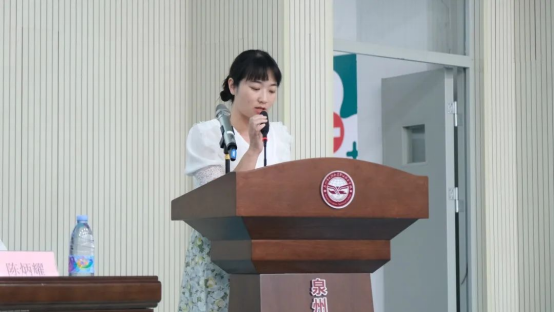 教師代表林佳老師通過生動詳實的例子告訴在場云揚學子,職業(yè)技術學校的學生通過自身的努力,習得一技之長,也同樣能夠成就精彩的人生!她倡議全體云揚教師要在不斷提升專業(yè)素養(yǎng),拓寬視野,提高教育教學水平的同時,還要融入學生,用高尚的品德潛移默化地感染學生。最后,她鼓勵云揚學子在接下去的職教周中要盡情演繹才技,讓學習、奮進的音符奏出最動聽的樂章,讓青春的夢想展翅飛翔。