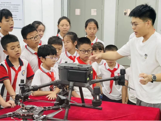 走進(jìn)飛行實(shí)訓(xùn)室的大門,就仿佛進(jìn)入了一個(gè)神奇的世界。這里各式各樣的飛機(jī)模型及它們身上的科技魅力,讓小學(xué)生們驚嘆不已。瞧,小小的腦袋、大大的疑問!他們眼神中流露出的求知和探索,仿佛一顆小火苗,點(diǎn)燃了心中的科技之火。我校實(shí)訓(xùn)中心老師們通過日常能看到的航空器材飛行,再到大氣對航空器材起飛的作用影響,介紹了無人機(jī)和飛行模擬器,由淺入深,開啟了一場奇妙的航空科普課堂,激發(fā)了孩子們的航空航天夢想。